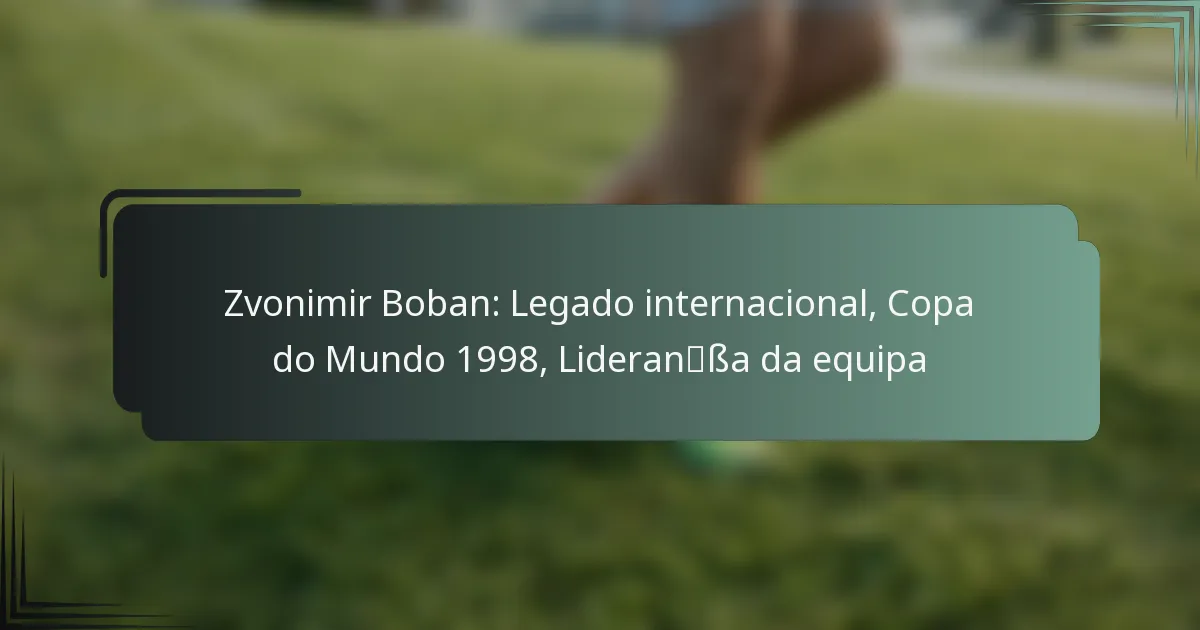 O legado de Zvonimir Boban é significativo no âmbito do futebol, particularmente pela sua liderança e contribuições durante momentos cruciais, como a Copa do Mundo de 1998. Embora ele possa não ter o mesmo reconhecimento global que Pelé ou Maradona, o seu impacto no futebol croata e no AC Milan destaca o seu lugar único na história.